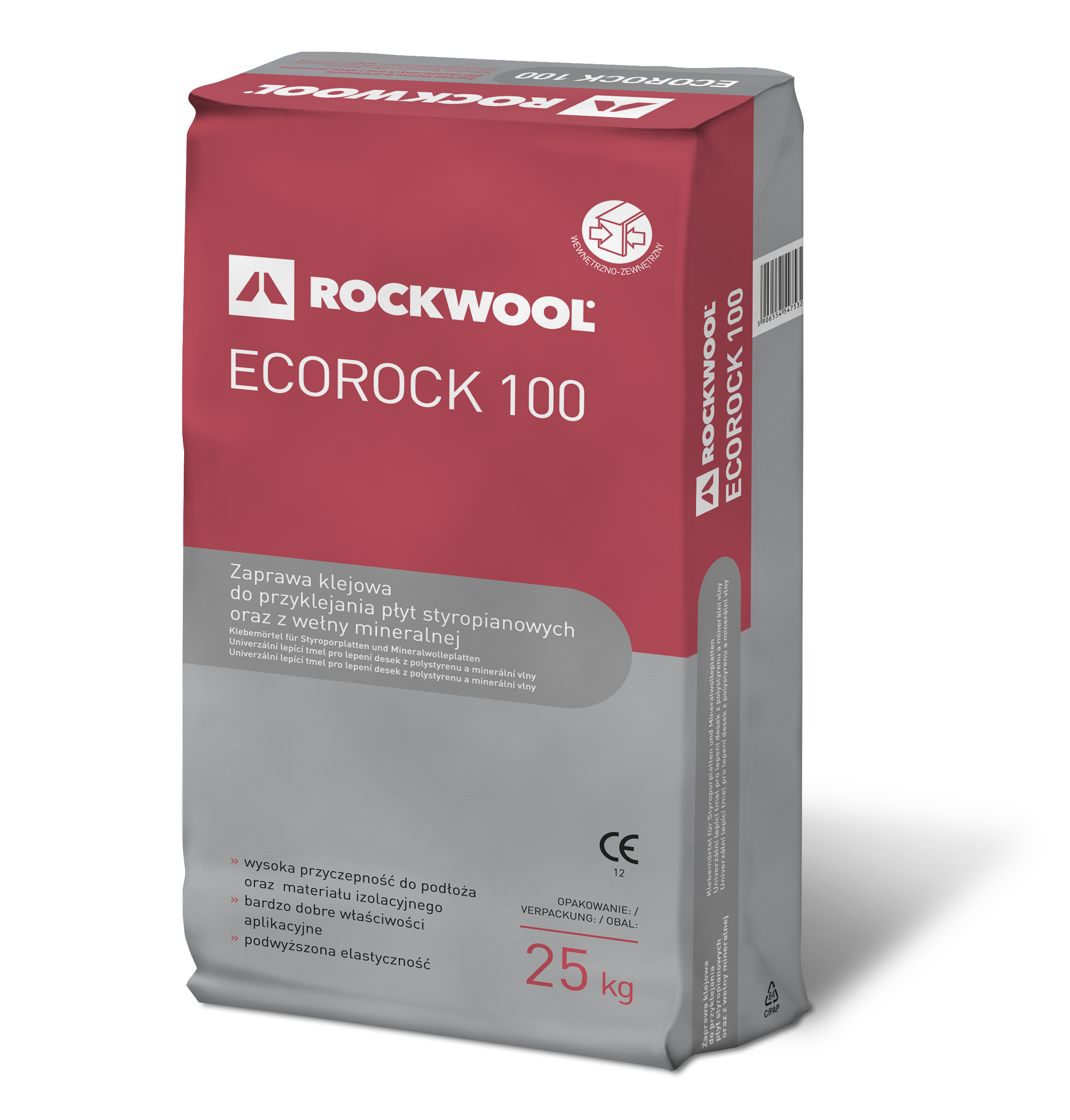 ECOROCK 100 dzięki swoim właściwościom nadaje się doskonale do przyklejania płyt styropianowych (w tym płyt z dodatkiem grafitu) oraz wełny mineralnej na różnego rodzaju podłożach wewnątrz i na zewnątrz budynku tj. beton, pustaki, cegła, tynki cementowe, cementowo-wapienne itp. Jest składnikiem systemu dociepleń ETICS ECOROCK PLUS i ECOROCK FF PLUS.