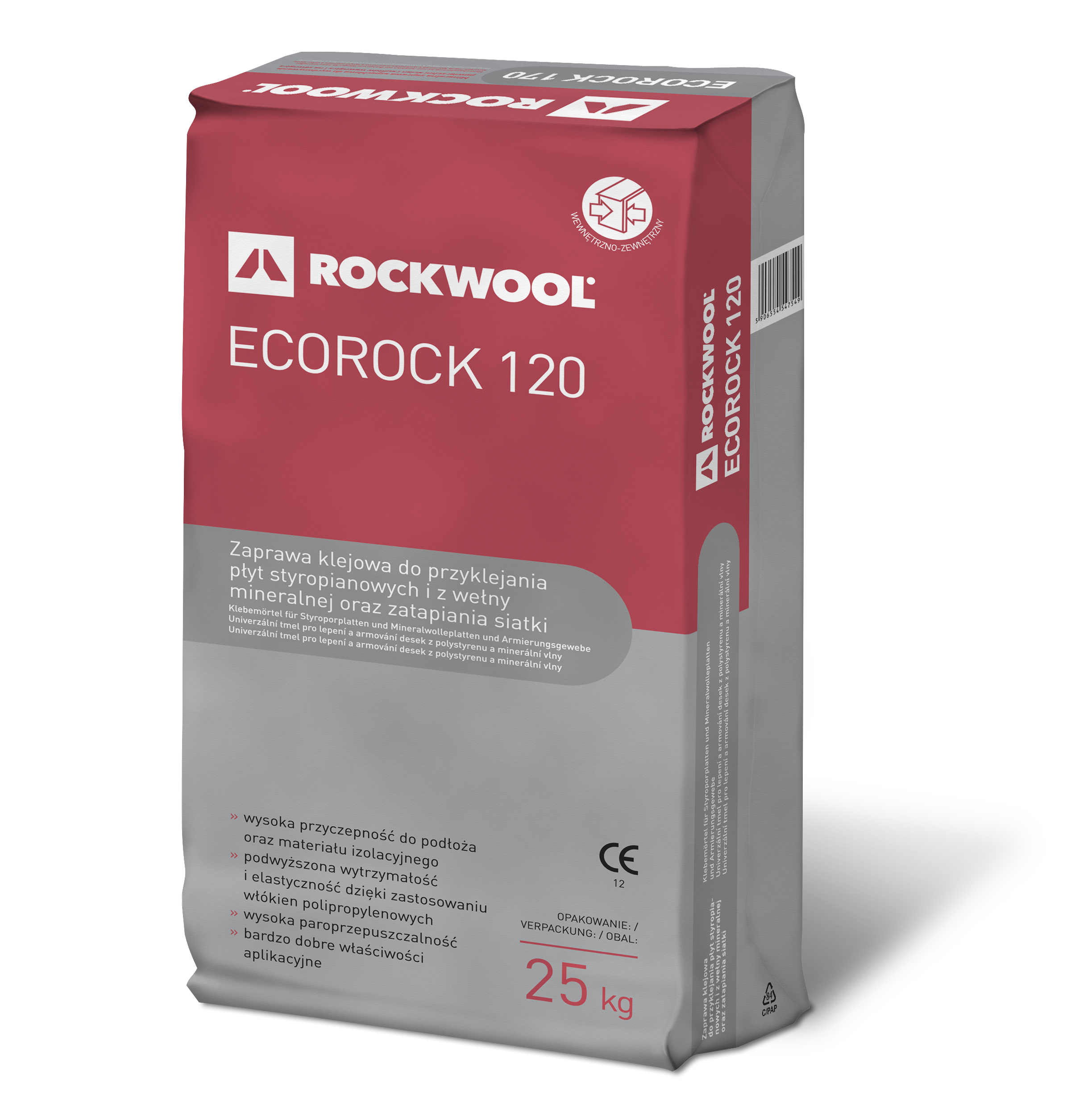 ECOROCK 120 dzięki swoim właściwościom nadaje się doskonale do przyklejania płyt styropianowych (w tym płyt z dodatkiem grafitu) jak również wełny mineralnej na różnego rodzaju podłożach wewnątrz i na zewnątrz budynku tj. beton, pustaki, cegła, tynki cementowe, cementowo-wapienne itp. oraz do wykonywania warstwy zbrojonej w systemie ociepleń budynków ETICS ECOROCK PLUS i ECOROCK FF PLUS.