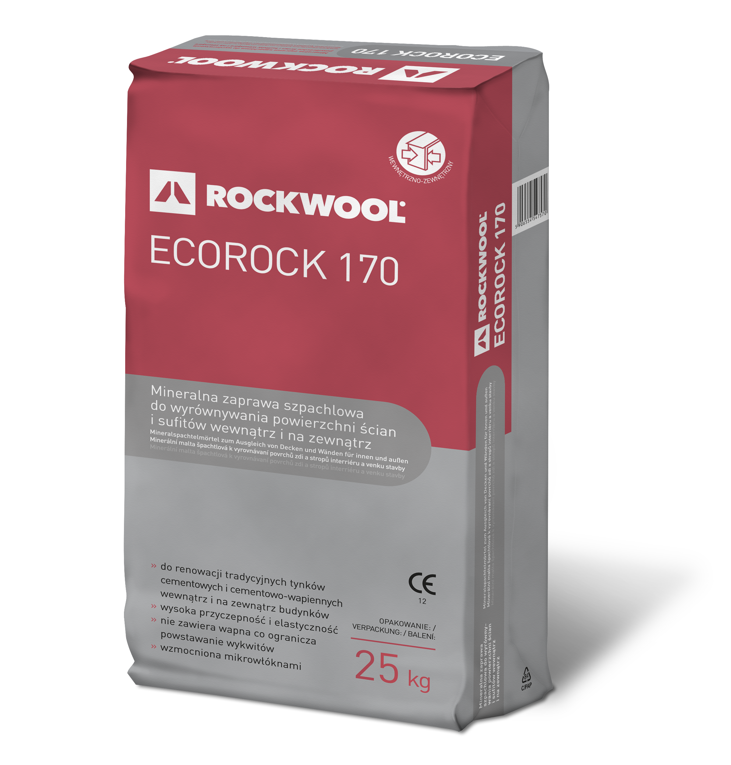 Masa szpachlowa ECOROCK 170 jest przeznaczona do renowacji tradycyjnych tynków cementowych i cementowo-wapiennych, na zewnątrz oraz wewnątrz budynków przy zachowaniu warstwy od 1-3 mm. Nadaje się również do wykonywania cienko-warstwowych wypraw tynkarskich w systemach ETICS ECOROCK PLUS oraz wyrównywania powierzchni ścian i sufitów. Może być również stosowany do wykonywania przecierek.