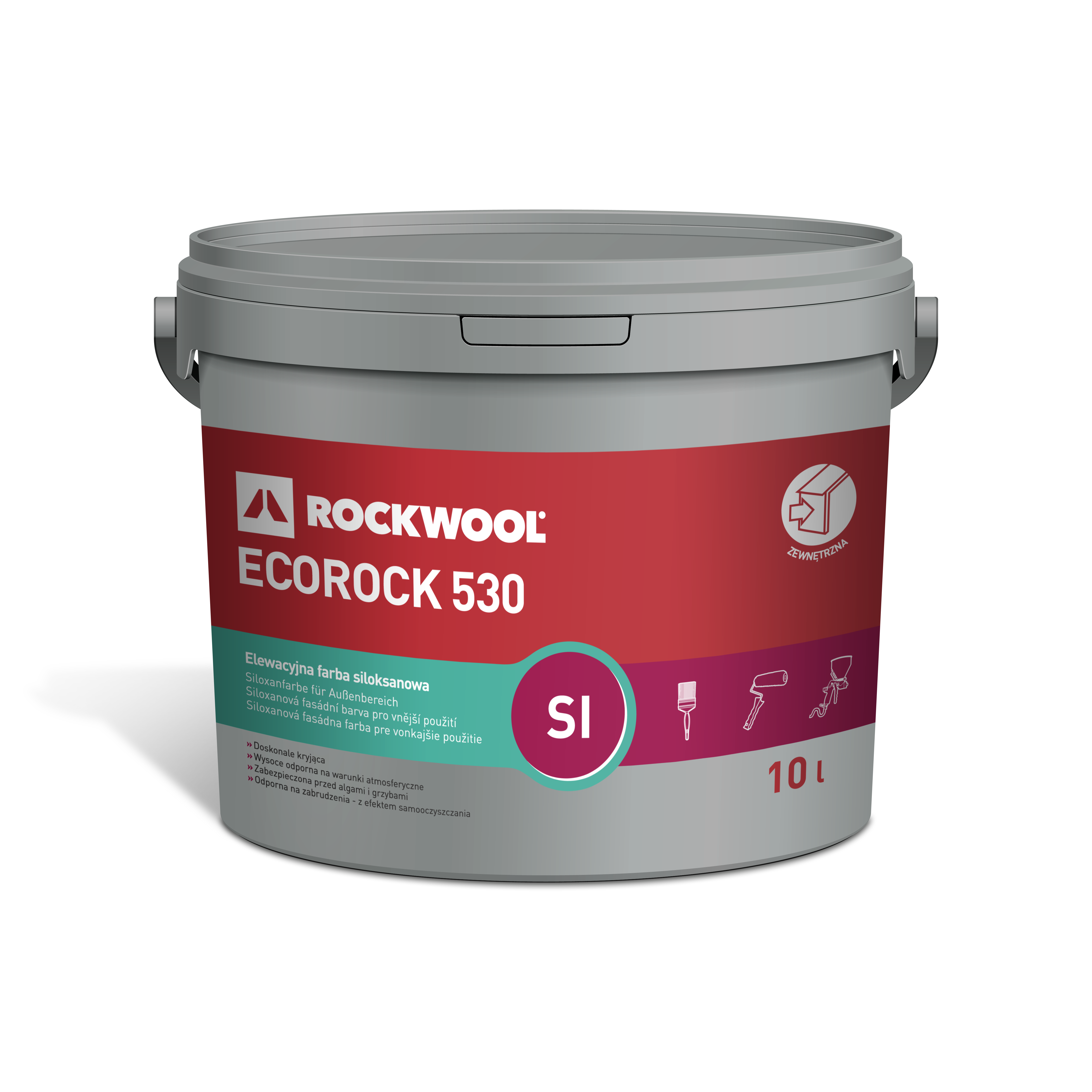 ECOROCK 530 jest wysokiej jakości wodną matową farbą siloksanową, przeznaczoną do wykonywania trwałych wymalowań na wszelkich podłożach, szczególnie na stary akrylowy tynk ozdobny oraz tynk cementowo wapienny i cementowy tynk ozdobny, beton, piaskowiec, cegła itp. Nadaje się na zewnątrz budynków.
