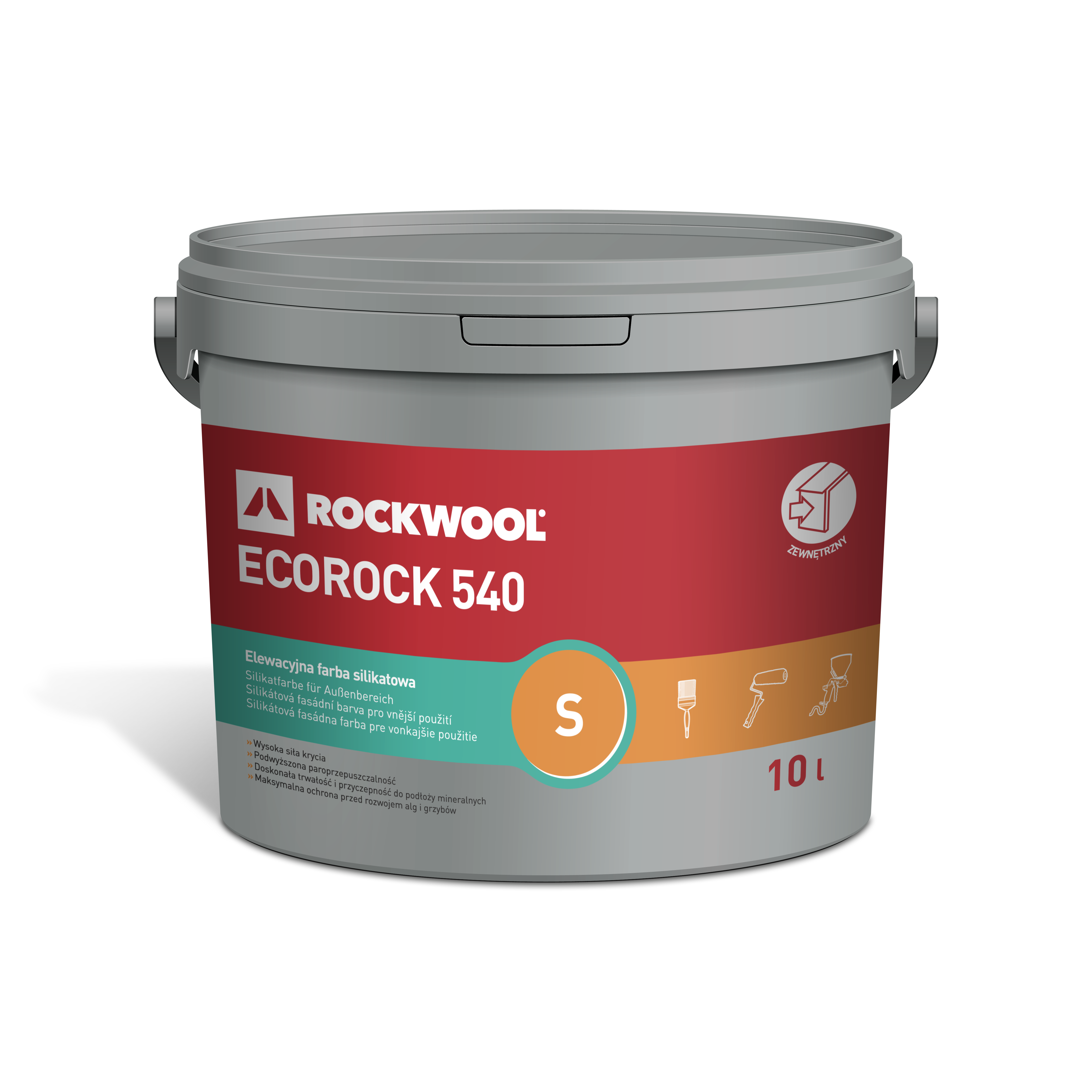 Farba silikatowa ECOROCK 540 przeznaczona jest do malowania podłoży mineralnych takich jak: tynki cementowe, cementowo-wapienne oraz cienkowarstwowe tynki mineralne. Służy również do malowania surowych powierzchni wykonanych z betonu, a także cegieł, bloczków, pustaków i innych tego typu materiałów ceramicznych lub wapienno-piaskowych.
