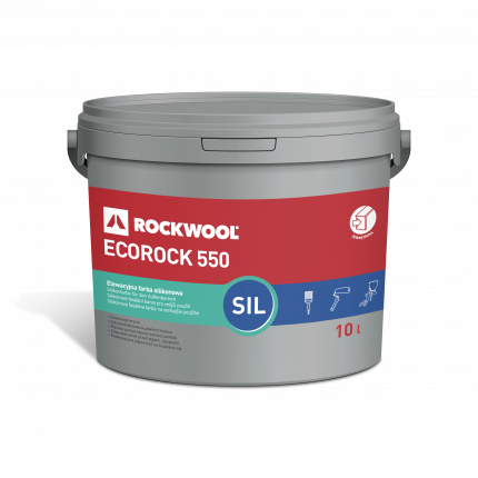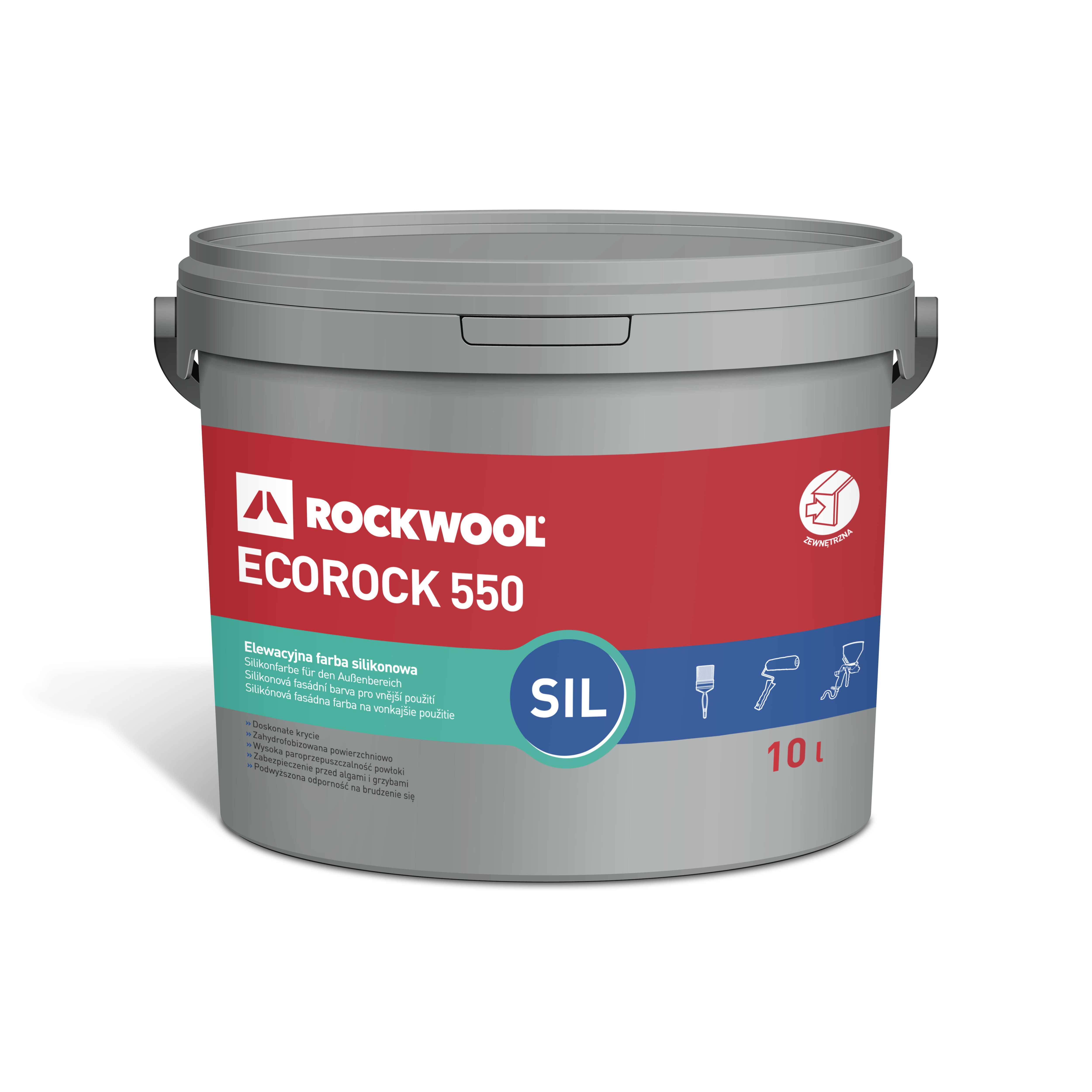 ECOROCK 550 jest wysokiej jakości wodną matową farbą silikonową, przeznaczoną do wykonywania trwałych wymalowań na zewnątrz budynku na tynkach cementowych i cementowo-wapiennych, cienkowarstwowych tynkach dyspersyjnych, podłożach betonowych, wykonanych z piaskowca, cegły itp.