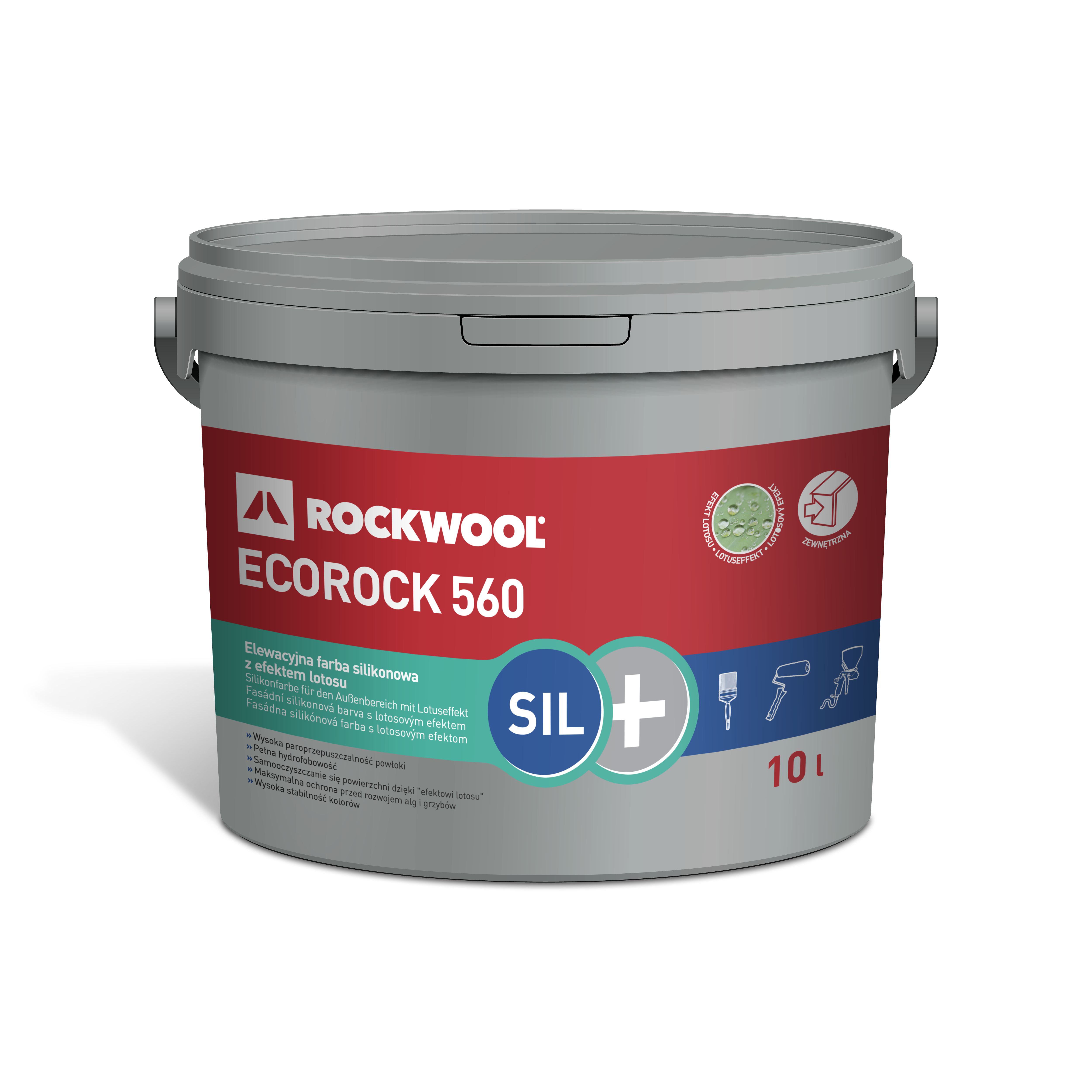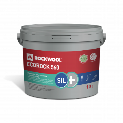 ECOROCK 560 jest wysokiej jakości wodną matową farbą silikonową, przeznaczoną do wykonywania trwałych wymalowań na zewnątrz budynku na tynkach cementowych i cementowo-wapiennych, cienkowarstwowych tynkach mineralnych i dyspersyjnych, podłożach betonowych, wykonanych z piaskowca, cegły itp.