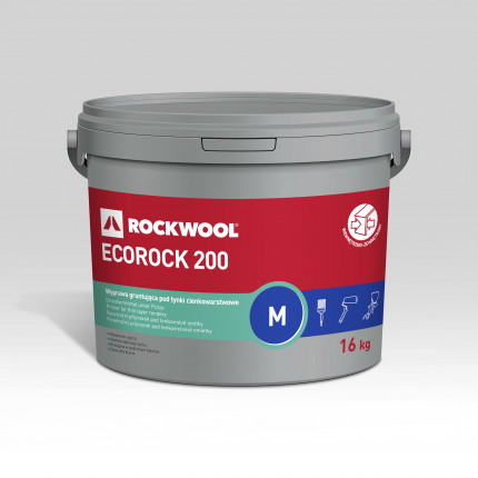 ECOROCK 200 to gotowa do użycia, dobrze kryjąca, zawierająca drobiny kwarcu wyprawa gruntująca pod tynki mineralne, akrylowe, silikatowe, siloksanowe i silikonowe. Dzięki swoim właściwościom niezbędna do gruntowania wszystkich powierzchni betonowych, ceramicznych, cementowo wapiennych, które będą pokrywane tynkiem. Można ją stosować zarówno wewnątrz jak i na zewnątrz budynku.